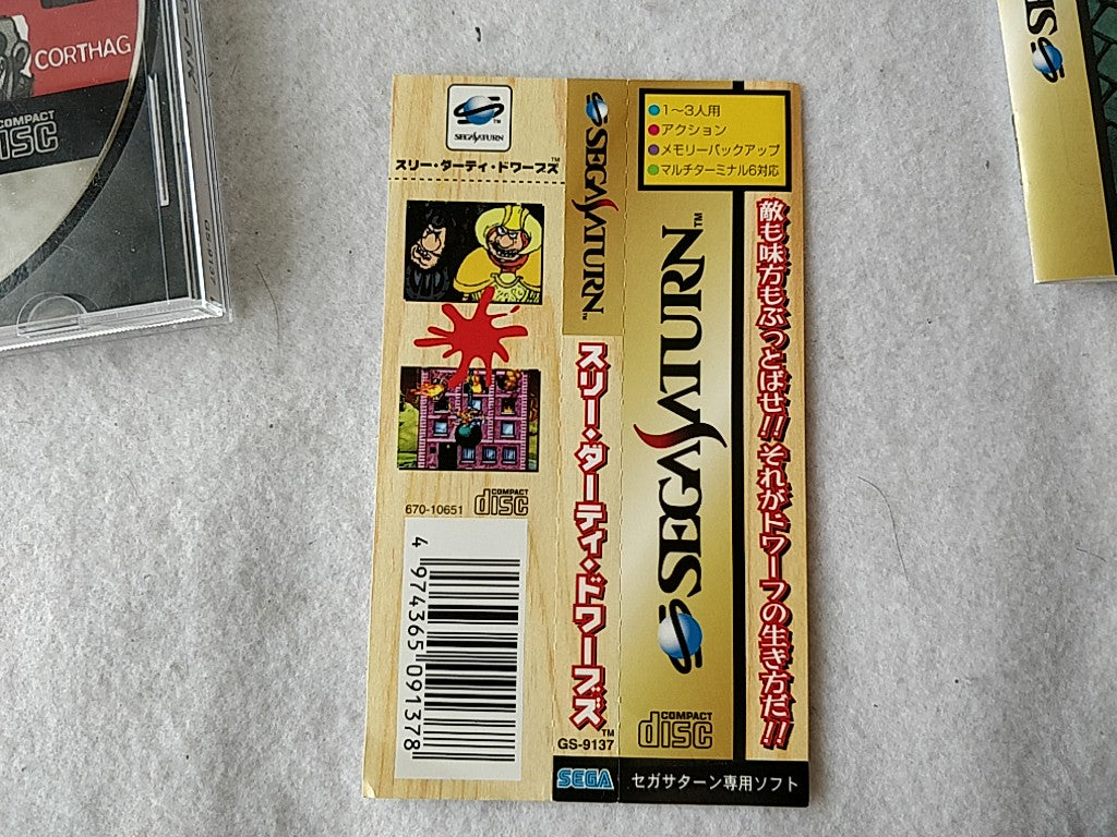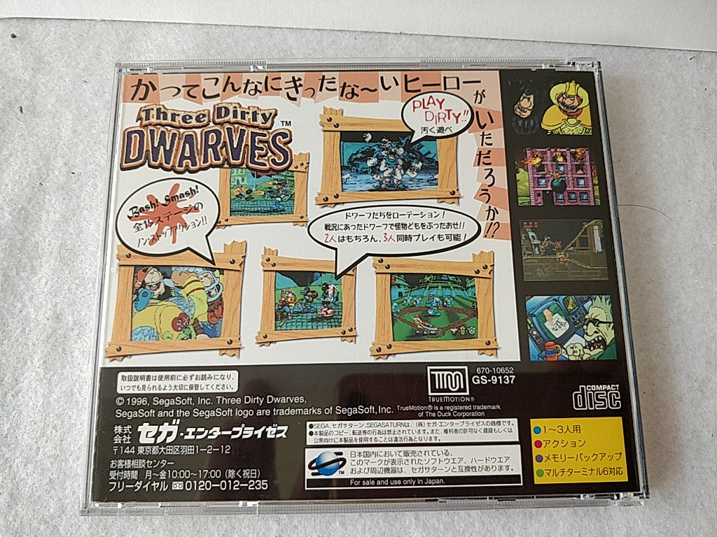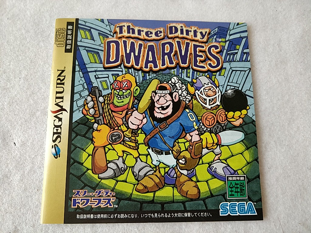 THREE DIRTY DWARVES SEGA Saturn Game Disk, Manual, Boxed set tested-d0519-