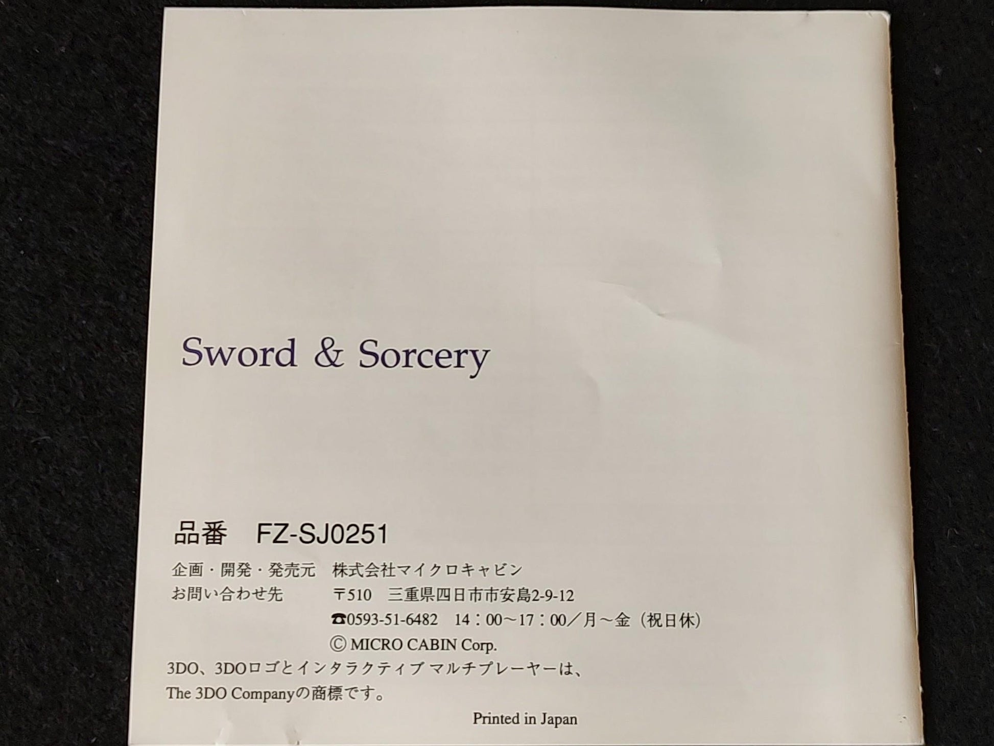Sword and Sorcery Panasonic 3DO Real Game Disk, Manual, Box set-f0608-