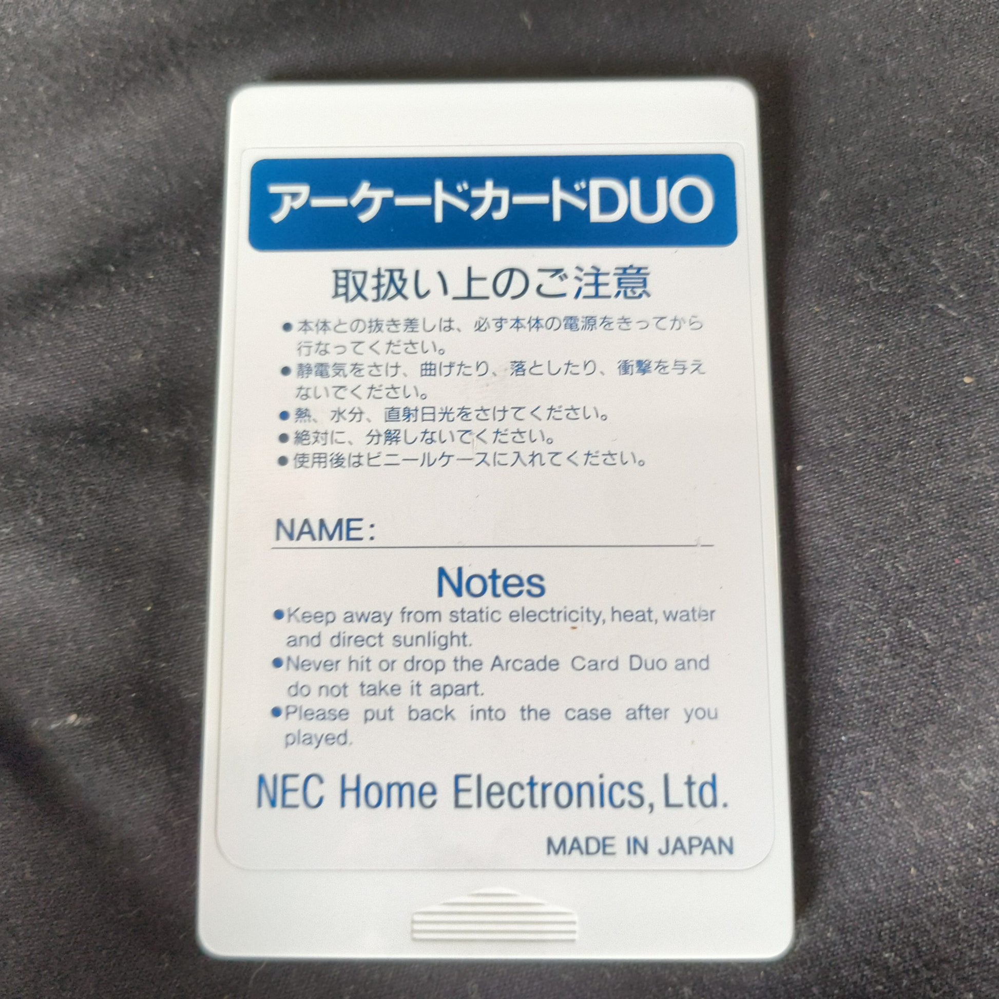 This Arcade card is for the game competitive for PC Engine Super CD-ROM.