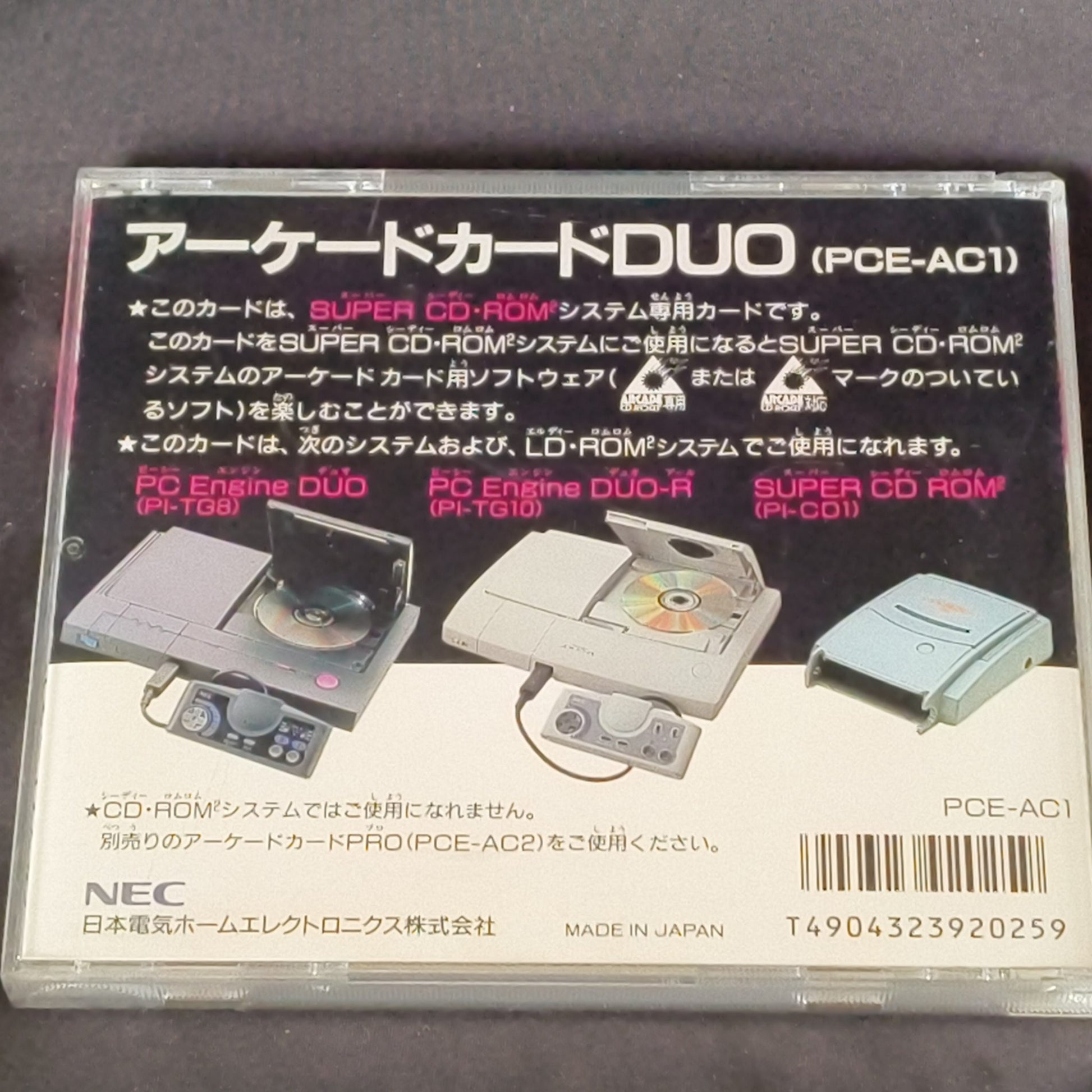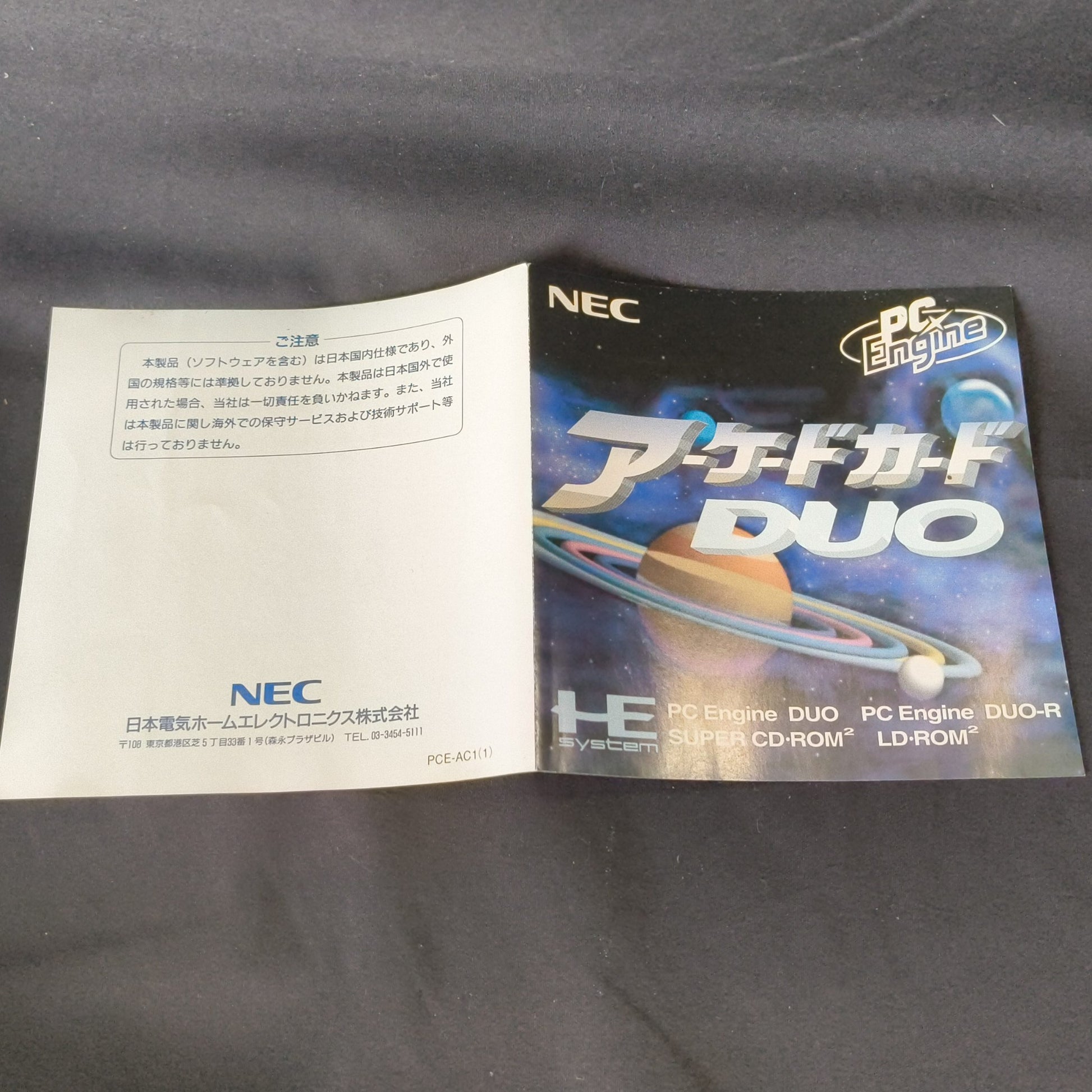 Arcade Card DUO NEC PC Engine TurboGrafx-16 PCE Hu-card and manual set, Working