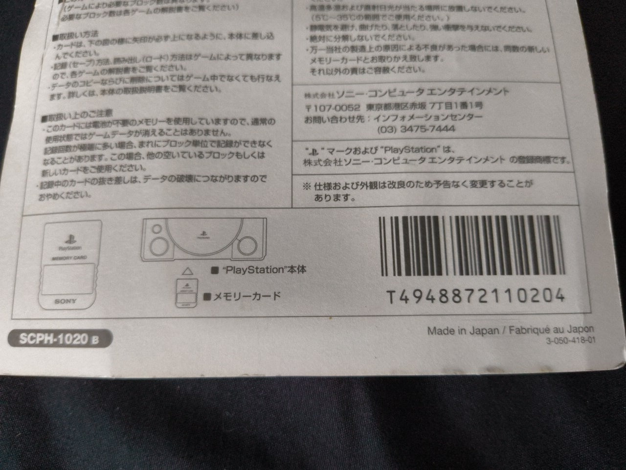 PlayStation 1 PS1 Official Memory Card Black scph-1020 With Original Box -h0114-