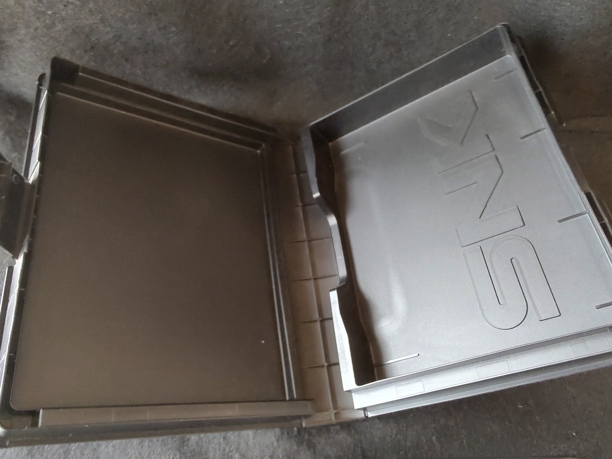 2. Box: The plastic case has some damage.