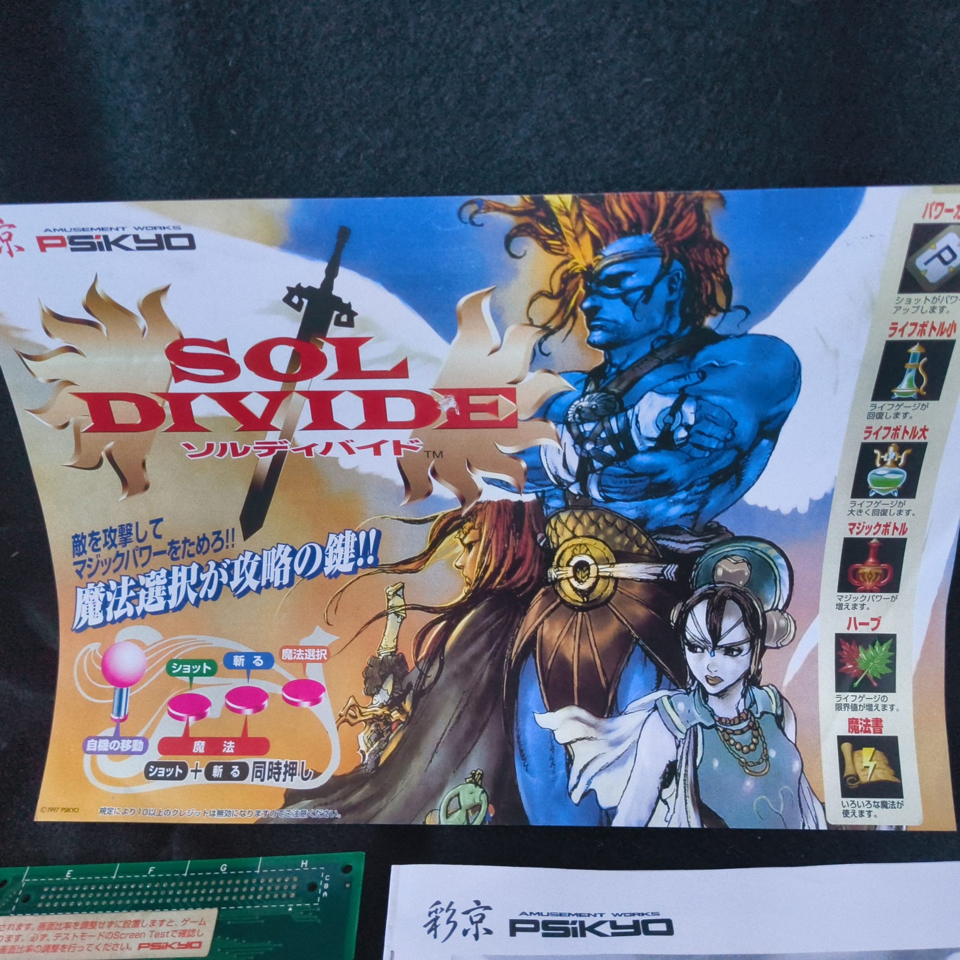 SOL DIVIDE Psikyo Arcade PCB System JAMMA Board and papers set, Working-h0726-