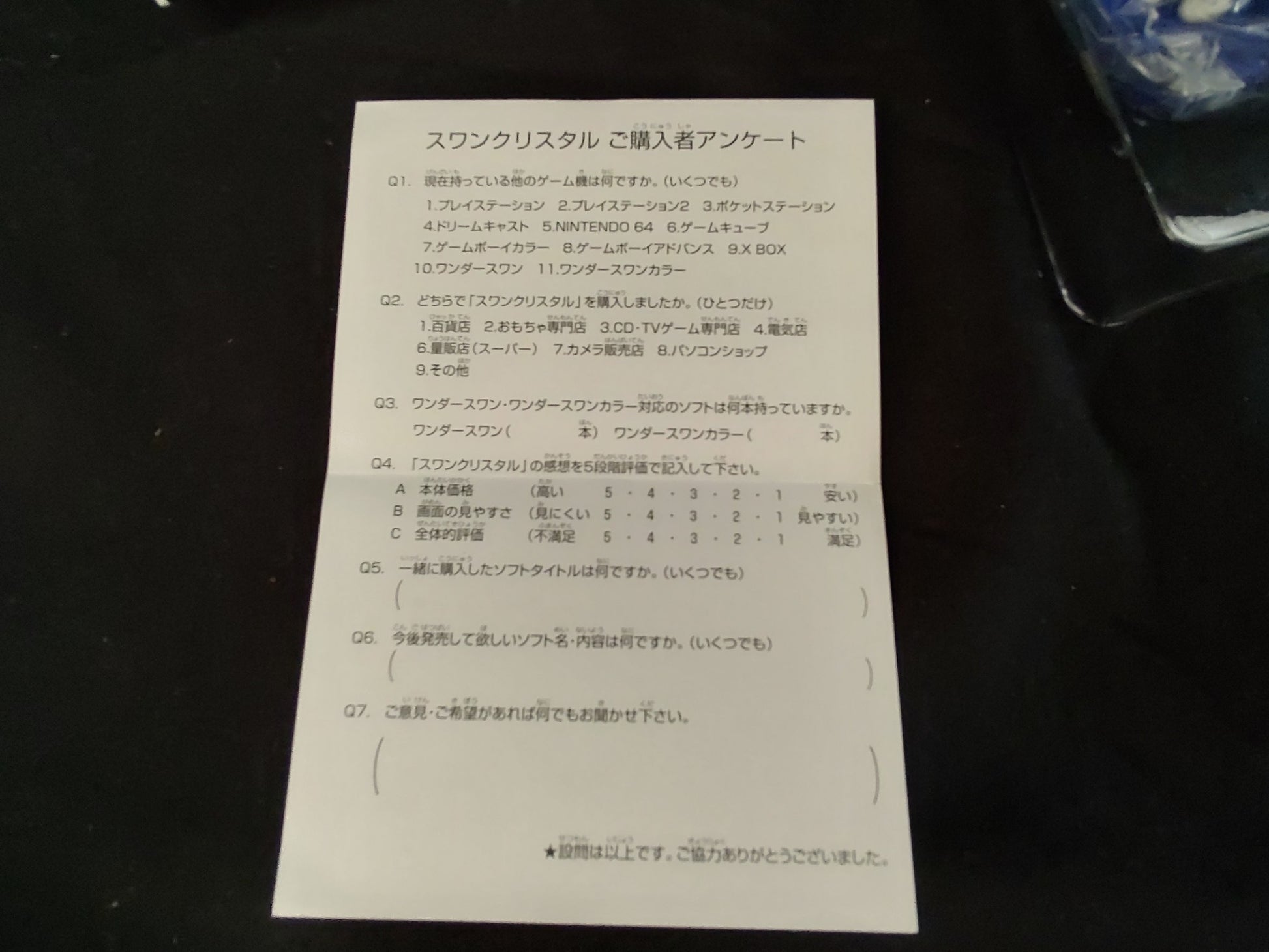 Bandai Wonder Swan Crystal Clear Blue BANDAI Console,Manual,Boexed set-f1020-