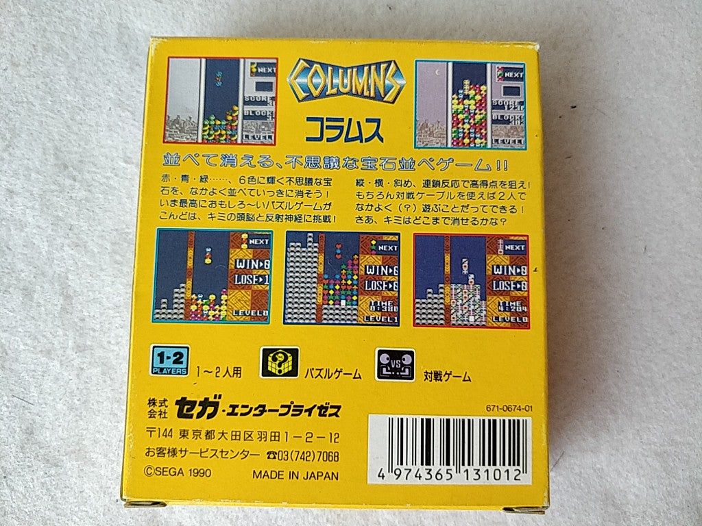 COLUMNS SEGA GAME GEAR GG Cartridge, Manual, and Box set tested-e0910-
